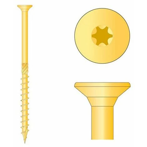 – 100 Vis bois Torx à tête plate D.6 x 200 mm – Zingué jaune.