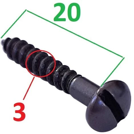 Lot de 10 vis à bois, tête ronde, fendue / Diamètre M3 x longueur 20mm (spécifique aux meubles anciens) / Ces vis en acier possèdent un aspect bronze vieilli idéal pour la réparation et la restauration de meubles anciens, rustiques, rétro, vintage (armoire, commode, table, chaise, lit, canapé, fauteuil, secretaire …) tout en conservant l’authenticité de l’ancien / Elles ont été sélectionnées spécialement pour leur design et leur style vintage / La tête ronde, fendue, s’adapte à de nombreuses utilisations /