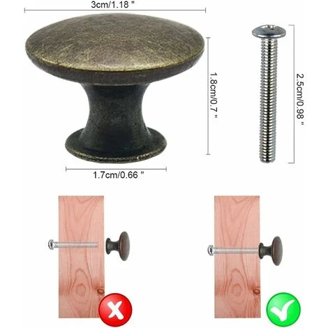 Taille du bouton du tiroir: 30 mm, diamètre de la base: 17 mm; hauteur: 21 mm, longueur de vis: 25 mm. Mesurez l’épaisseur du meuble (planche de bois) avant de commander. Kit comprend 12pcs bouton armoire noire incluse. Chaque bouton est équipé d’une vis de réglage.