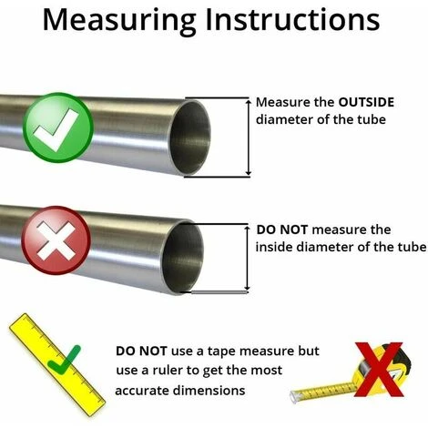 La taille se réfère aux dimensions EXTERNES du tube – veuillez consulter les images de dimensions montrant comment mesurer