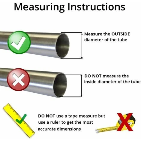La taille se réfère aux dimensions EXTERNES du tube – veuillez consulter les images de dimensions montrant comment mesurer