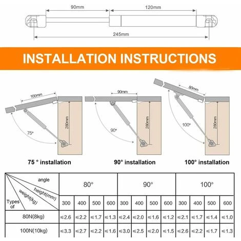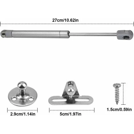 GAS STRUT – 100N / 22.5lb / 10KG, Lenth: 10,63 pouces; 150N / 33lb / 15Kg, Lenth: 10,63 pouces; 200N / 45lb / 20kg, Lenth: 10,63 pouces.