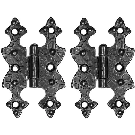 lot de 2x charnière plate, fer forgé noir, 70x45mm ; 6 trous de fixation pour les vis ; style retro, vintage, rustique ; sélectionné pour vous, charnière décorative et fonctionnelle parfaite pour rénover vos meubles anciens ;