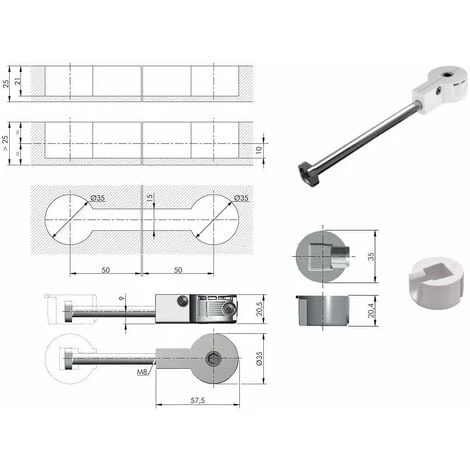 2x Connecteur rapide mâle + femelle ; Diamètre = 35mm ; M8 x 100mm ; Epaisseur minimale du plan de travail = 25mm