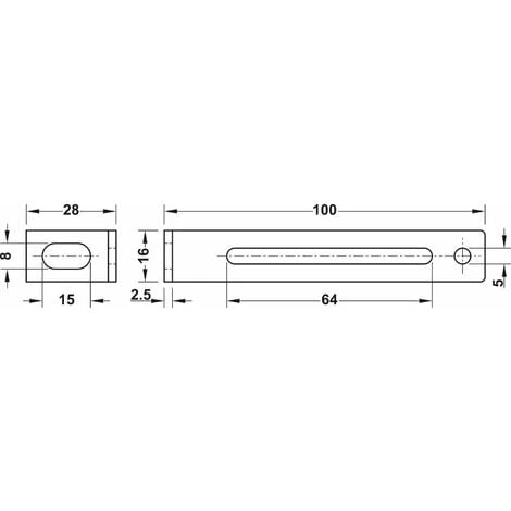 Équerre à visser, acier, chromé, avec un trou oblong 8 mm, 1 trou oblong 5 mm et 1 trou de vissage 5 mm