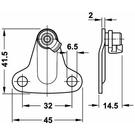2x Equerre de montage pour compas relevant Duo et Duo Forte ; Permet d’assembler le compas au caisson ; Distance par rapport au bord = 37mm ; Matière = Acier ; Finition = Nickelé ; A visser (entraxe 32mm, vis non incluses)