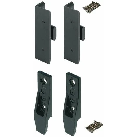 Kit de ferrures d’assemblage complet comprenant : 2 connecteurs mâle, plastique + 2 connecteurs femelle, plastique + 8 vis cruciforme, acier (Utilisation universelle pour meuble, porte, placard, plaque de bois …)