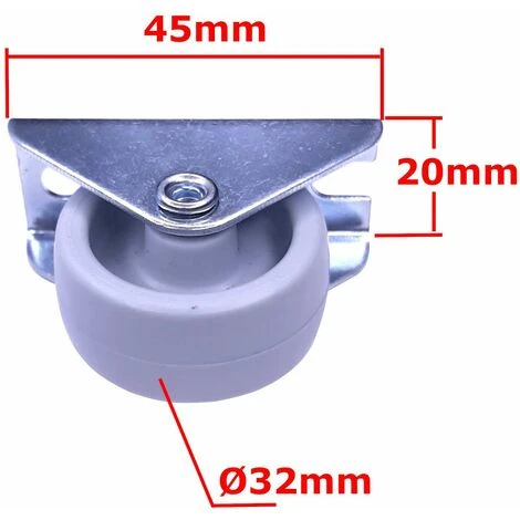 Lot de deux roulettes droites ; Capacité de charge = 45kg ; Diamètre = 32mm ; Hauteur = 34mm ; Embase = 20x45mm ; Polypropylène et acier galvanisé ;