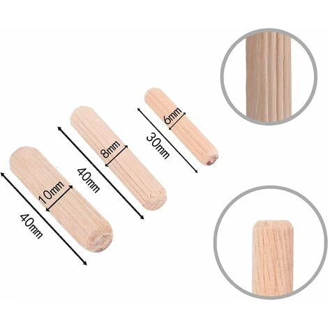 Tourillon bois 6/8/10 mm: Nous incluons des tourillon bois de 100 pièces 6 mm, des chevilles en bois 100 pièces 8 mm, des chevilles en bois 100 pièces 10 mm, au total en 300 pièces pour répondre à vos différents besoins.