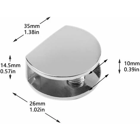 Disponible pour panneaux de verre, acrylique, métal ou bois de 8 à 10 mm.Le tampon en silicone souple à l’intérieur protège le verre et évite les frottements.Clips en verre Dimensions : 31mm * 27mm * 15mm.