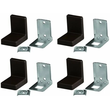 4x Equerre d’assemblage en acier ; Avec cache en plastique marron foncé ; Capacité de charge = 40kg par pair ; Dimension (avec cache) = 52 x 50 x 39mm ; Vis non inclues