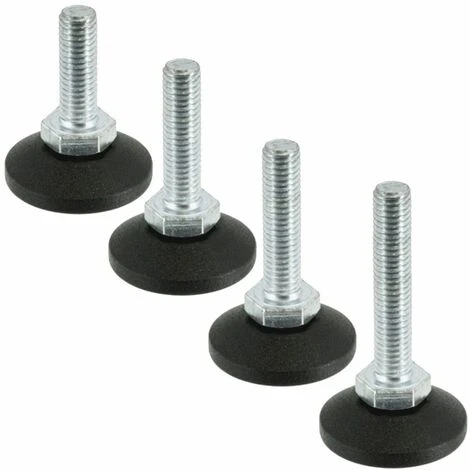 4x Vérins vis de réglage. Vis vérin M8 (vis selon DIN 558). Longueur tige (en mm) : 40mm. Diamètre base : 30mm. Charge maximale admissible par pied : M8 = 400Kg. Acier (zingué) et plastique (Polypropylène).