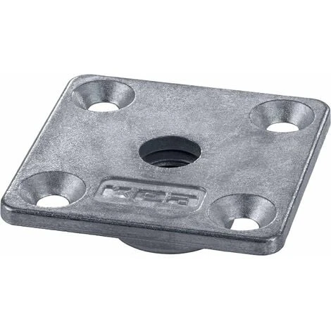 4x Plaque de fixation carrée ; Dimensions = 47,5 x 47,5mm ; Profondeur = 13,5mm ; Epaisseur = 3mm ; Matière = Alliage zingué ; Filetage intérieur = M8 ; Le ressort en acier intégré permet d’aligner les pieds de meuble par rapport aux bords du meuble ; A visser (Vis non incluses) ; Idéal pour pied de meuble