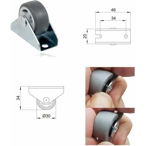 Capacité 30kg par roulette, lot de 4, roulette recouverte d’une couche de caoutchouc anti rayure pour le sol, base métal, utilisation universelle