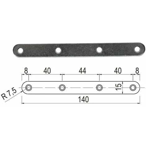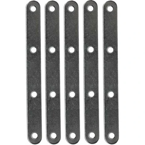 5x Patte d’assemblage droite à bouts ronds ; Perforée de 4 trous ; En zinc blanc ; Longueur = 140mm ; Largeur = 15mm ; Epaisseur = 2mm ; Utilisations diverses et variées
