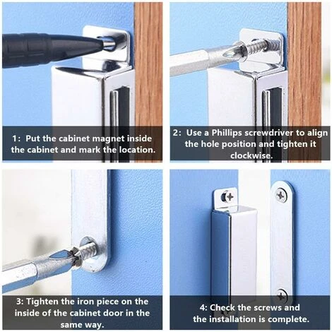 que celle en plastique. Les aimants de placard constituent un moyen simple et efficace d’absorber facilement et fermement la porte.