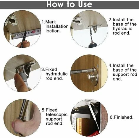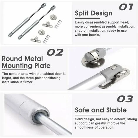 【Charge haute pression 100N】Notre support d’armoire est de 100N, ce qui est différent de la plupart des supports d’armoire sur le marché. Notre seul support peut supporter une pression maximale de 10 kg, ce qui peut vous aider à supporter certaines portes