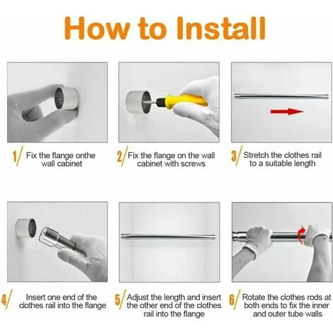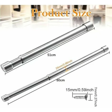 【Large gamme d’applications】Les tringles à rideaux, les tringles de garde-robe, les cintres, les supports à chaussures peuvent tous être ajustés en longueur. Les tringles à tirer peuvent également être utilisées dans les armoires de camping-car pour garder