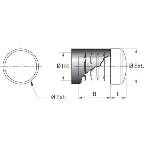 Les ailettes extérieures permettent à la pièce de sadapter aux différentes épaisseurs du tube. Lailette fendue, au plus petit diamètre, permet de positionner et de placer la pièce en exerçant une légère pression.
