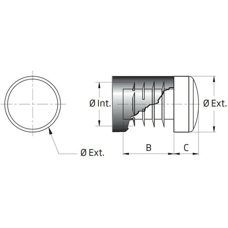 Les ailettes extérieures permettent à la pièce de sadapter aux différentes épaisseurs du tube. Lailette fendue, au plus petit diamètre, permet de positionner et de placer la pièce en exerçant une légère pression.