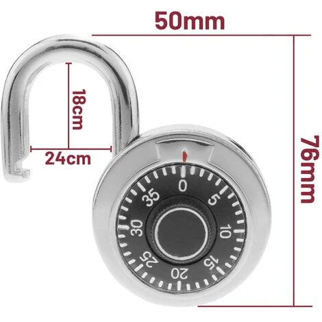 - CARACTÉRISTIQUES : Serrure de sécurité avec serrure à combinaison rotative. Il a une goupille de 8 mm de diamètre pour verrouiller la serrure. Fermez et verrouillez avec la combinaison rotative à 3 chiffres. Le mot de passe ne peut pas être modifié.