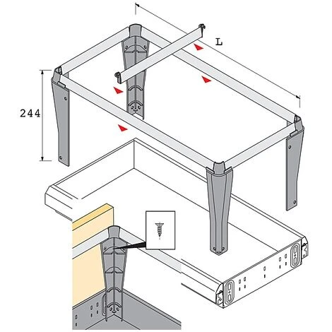 Tiroir à cadre à dossiers suspendus monté sur tiroir en acier nickelé noir et gris, longueur 504 mm, hauteur 244 mm, Acier nickelé, réf. 9039924