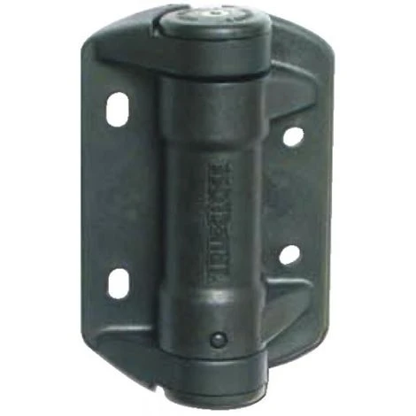 Charnières permettant la refermeture automatique du portillon. Force réglable par ressort. Testées à 50 000 cycles. Matériaux polymère renforcé. Anti U.V. et anti-rouille. L’entraxe entre deux charnières doit être supérieur ou égal à 1,10 ml, dans le cas contraire prévoir des rondelles anti-appui. Pour portail de 25 kg maximum par paire de charnières.