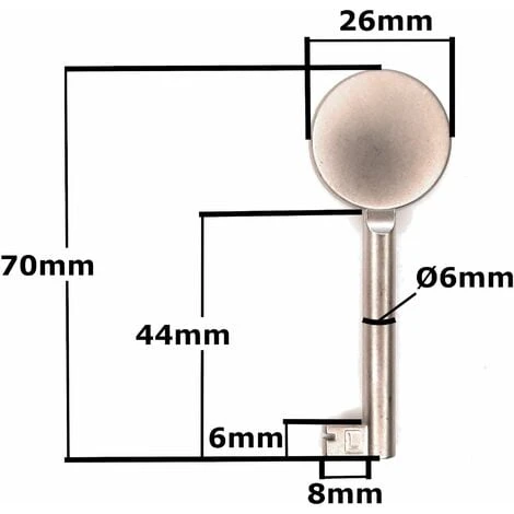 Clé de remplacement pour meuble contemporain, design ; Convient pour les meubles, les commodes, les tiroirs, les penderies ; Longueur totale : 70mm ; Dimensions complètes en photo 3 ; Produit neuf, finition nickelé mat ; Sélectionné pour vous, clé décorative et design parfaite pour rénover vos meubles ;