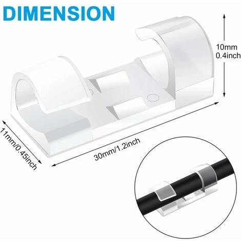 - 【60 clips de fil par bo?te】 Longueur 30 mm / 1,2 pouces, largeur 11 mm / 0,45 pouces, hauteur 10 mm / 0,4 pouces; Convient aux cables d’un diamètre (maximum) de 5 mm / 0,2 pouces, la taille convient à la plupart des fils, de petite taille et peu encombrant.