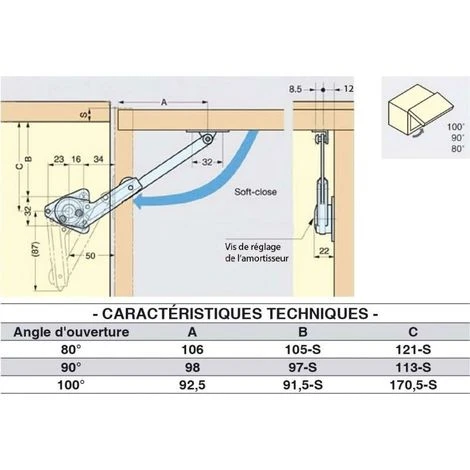 - Angle d’ouverture maxi : 100°