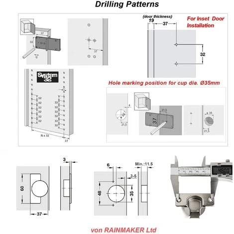 Pour Application Plein Recouvrement; Avec Gabarit de Perçage pour toutes les charnières dissimulées standard 26mm et 35mm