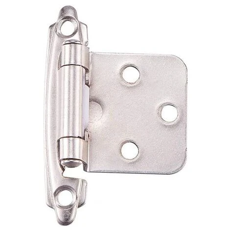 La charnière à superposition variable se fixe à l’intérieur de la porte de l’armoire et du mur de l’armoire adjacent.