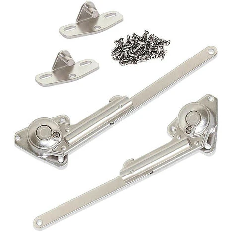 Composants : 2 compas relevables (droite et gauche), 2 fixations pour porte en bois, vis pour montage