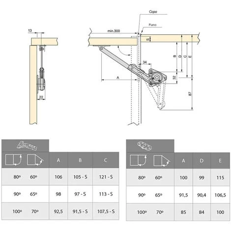 – Jeu de compas pour meubles à portes relevables.