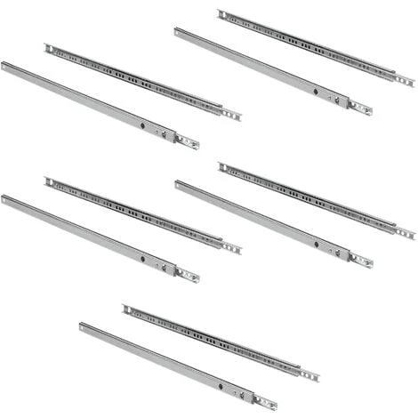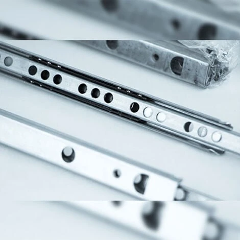 Coulisses à billes à sortie partielle fabriquées en acier zingué. Ce type de coulisses peut s’adapter à une rainure de 17 mm de largeur sur le côté du tiroir. Charge maximum du tiroir 10kg.