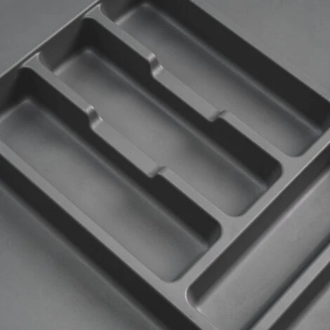 Porte-couverts pour tiroirs de cuisine Vertex et Concept avec un design droit et une grande capacité de rangement pour les couverts et autres ustensiles de cuisine, tirant le meilleur parti de l’espace. À utiliser avec des tiroirs montés sur des modules d’une largeur comprise entre 400 mm et 1000 mm, d’une profondeur de 500 mm et d’un plateau de 16 mm d’épaisseur. En plastique blanc et gris anthracite.