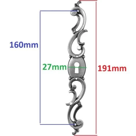 Entrée de clé, coq, main droite, zamak finition vieux fer, argenté ; longueur : 190mm x largeur : 27mm x épaisseur : 3mm (entraxe de fixation 160mm) ; convient pour la restauration de vieux meubles, armoires, portes, tiroirs, commodes, serrures de porte ; sélectionné pour vous, entrée de clé décorative et design parfaite pour rénover vos meubles anciens tout en conservant un aspect authentique