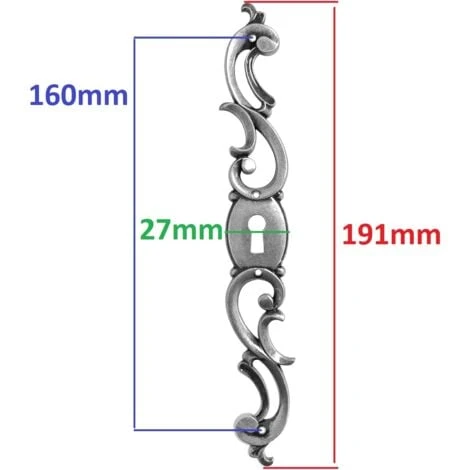 Entrée de clé, coq, main gauche, zamak finition vieux fer, argenté ; longueur : 190mm x largeur : 27mm x épaisseur : 3mm (entraxe de fixation 160mm) ; convient pour la restauration de vieux meubles, armoires, portes, tiroirs, commodes, serrures de porte ; sélectionné pour vous, entrée de clé décorative et design parfaite pour rénover vos meubles anciens tout en conservant un aspect authentique ;
