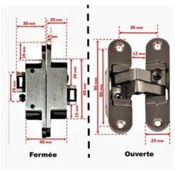 1 Charnière Invisible « KLOSE Besser » – 3D Aluminium. Couleur Inox Satiné. Droite