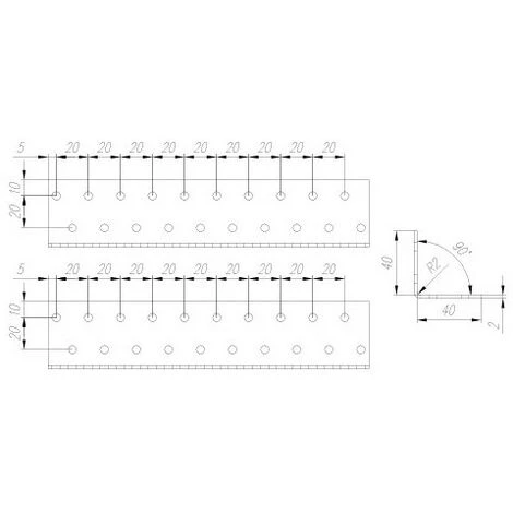 - Equerre angulaire : Équerre perforée galvanisée – 40 x 40 x 200 x 2,0 mm
