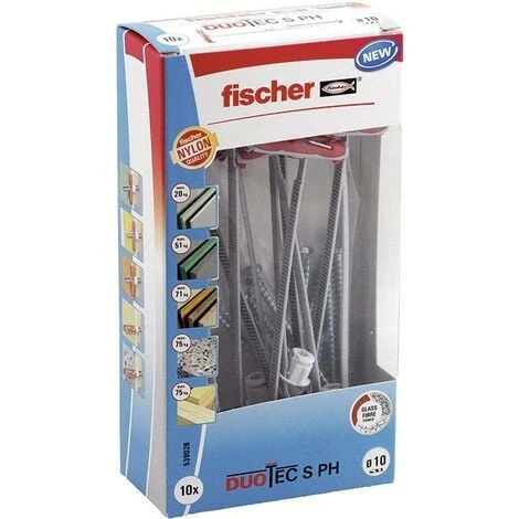 La cheville à bascule en polyamide fischer DUOTEC pour charges de traction et charges transversales grâce à 2 composants. Montage simple grâce au faible diamètre de perçage de 10 mm et à l’élément à bascule court, même dans les interstices étroits. Prémontage simple, la cheville ne tombe pas dans le trou de perçage, même en l’absence de vis. Pas d’entaille pour éviter de fragiliser la plaque de plâtre. La bascule de la cheville se déploie automatiquement derrière la plaque et lui donne toute sa résistance. Grâce au logement pour vis flexible en acier inoxydable, les chevilles à bascule peuvent être utilisées avec des vis à bois ou des vis pour panneaux d’agglomérés, ou des tiges filetées ou à crochet avec contre-écrou. Dans des matériaux de construction pleins, il fonctionne comme un crochet à expansion. La vis à tête cylindrique fournie est parfaitement adapté aux chevilles à bascule fischer DUOTEC. Ceci garantit un maintien parfait.