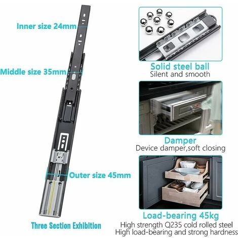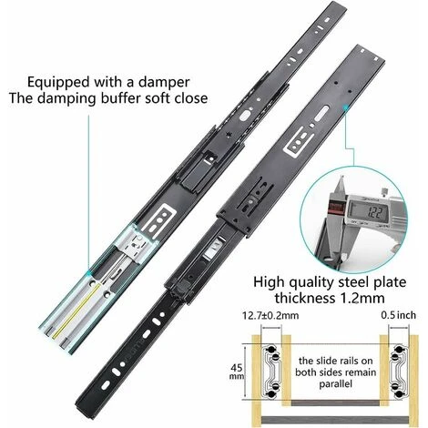 Glissières de tiroir avec mécanisme de fermeture amortie, 450 mm, 5 paires.