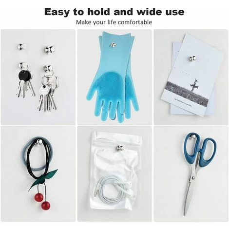 Largement utilisé – Idéal pour attacher du papier, des photos, des cartes et des notes à diverses surfaces métalliques telles que des réfrigérateurs, des tableaux blancs, des bibliothèques en aluminium, etc. Les petits mini-aimants en néodyme fonctionnent également comme des crochets pour suspendre des clés, etc., offrant une grande commodité.