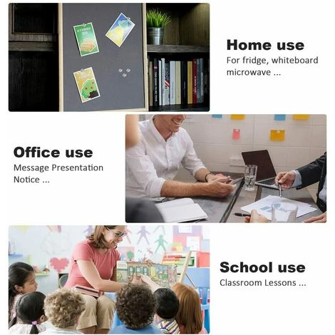 Notre ensemble d’aimants peut être utilisé dans n’importe quel bureau, école, ou vous pouvez même mettre vos précieuses photos de vacances dans votre réfrigérateur !