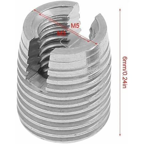 Longueur: 6mm Taille du filetage extérieur: M5 (diamètre) x 0,5 (pas) Diamètre de perçage: 4,5 ~ 4,6 mm (plastique); 4,6 ~ 4,7 mm (alliage d’aluminium); 4.7 ~ 4.8mm (fonte) Min.