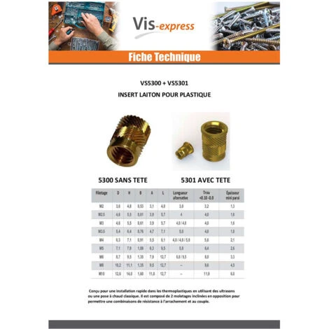 Insert Sans tête SONICFIX Laiton M4X8.1Insert Sans tête SONICFIX Laiton M4X8.1 Autre références : 3663072429475