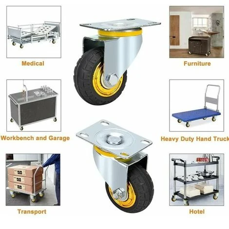 écoles, magasins, garage, chariots et hôpitaux. [Capacité de charge ] Capacité de charge maximale de 80 kg par roue. Sans danger pour tous les types de sols et parquet. Tête rotative avec double roulement à billes pour une rotation à 360 degrés pour un mouvement de roue plus confortable et plus fluide.