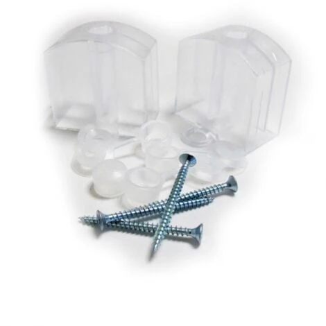 Kit de fixation pour grandes ondes en PVC, polycarbonate, polyester ou acier galvanisé. Ce kit comprend les éléments suivants: 10 grandes cales d’ondulation transparentes, 10 vis à bois, 10 capuchons anti-corrosion transparents et étanches.