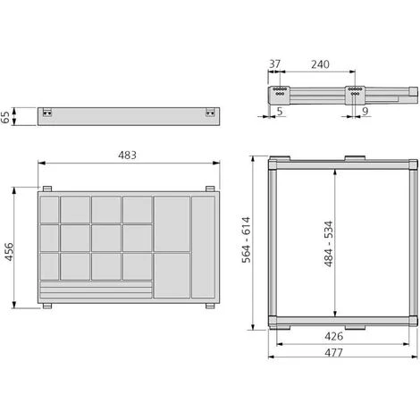 - Valable pour intérieur d’armoire de 564-614 mm.