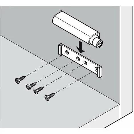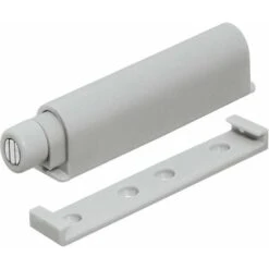 Loqueteau à pression avec ressort magnétique et plaque d’adaptation associée à visser (Vis non incluses) ; Matière = Plastique Delrin ; Couleur = Gris clair ; Ajustable / Réglable ± 5mm ; Force de déclenchement / de maintien = Environ 36N ; Adapté aux portes sans poignée ; Pour les portes à cadre en bois, en verre et en métal ; Contre pièce à commander séparément